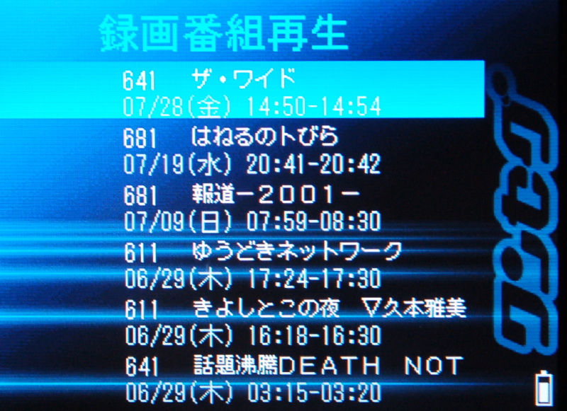 録画番組のリスト表示画面