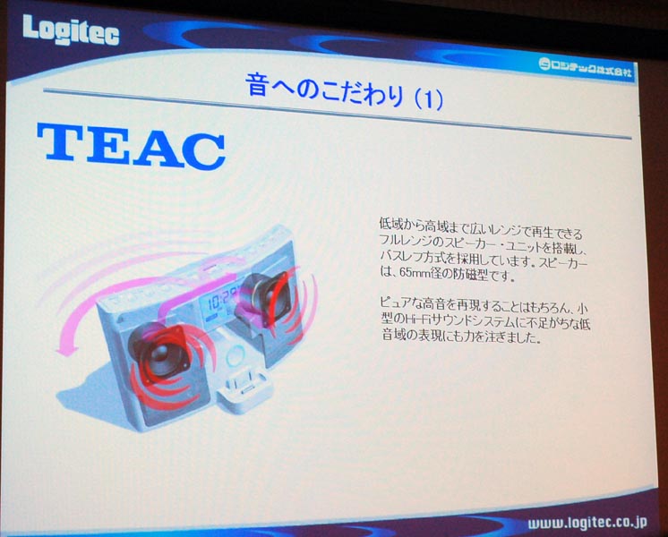 ロジテック、ティアックとの共同開発モデル第1弾となるiPod用スピーカーを発表