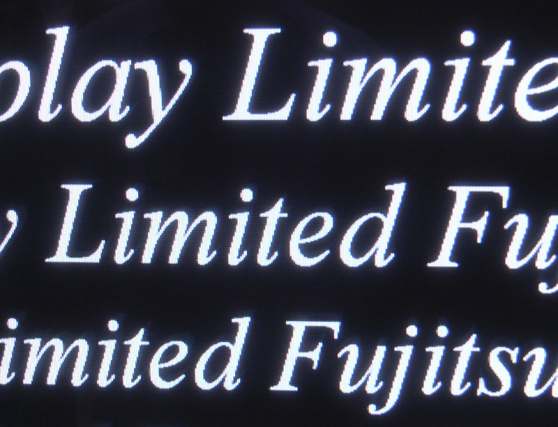 同じく50V型HDパネル。拡大すると文字の斜め線などにギザギザがあることがわかる