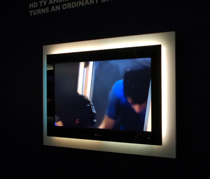HOME > ニュース > AV&ホームシアターニュース <IFA2006レポート:フィリップス(1)>独自技術「Ambilight」搭載テレビがさらに進化 2006年09月02日 次の写真へ 上下左右の4方向に発光体を搭載した「Ambilight Full Surround」搭載モデル 次の写真へ この写真の記事へ 関連リンク IFA2006レポートの一覧はこちら IFA2006 日本語サイト