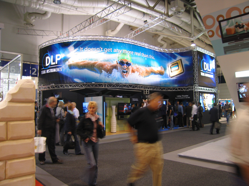 HOME > ニュース > AV&ホームシアターニュース <IFA2006:TI(1)>DLP採用フロントプロジェクターをエントリーからハイエンドまで充実展示 2006年09月03日 次の写真へ TIブース正面。DLP採用のプロジェクション商品が数多く展示された 次の写真へ この写真の記事へ 関連リンク IFA2006レポートの一覧はこちら IFA2006 日本語サイト