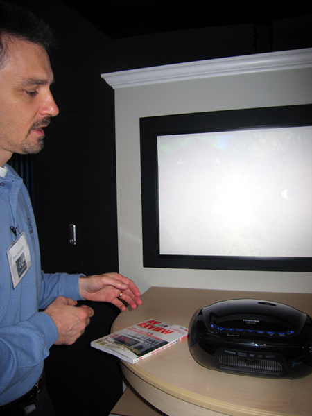 HOME > ニュース > AV&ホームシアターニュース <IFA2006:TI(1)>DLP採用フロントプロジェクターをエントリーからハイエンドまで充実展示 2006年09月03日 前の写真へ 次の写真へ 東芝のET20を紹介されるピーター・ヴァン・ケッセル氏 前の写真へ 次の写真へ この写真の記事へ 関連リンク IFA2006レポートの一覧はこちら IFA2006 日本語サイト