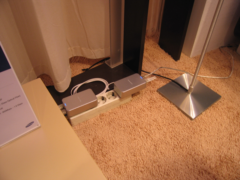 「HANA」のデモ。コンセントタップ上で情報をリレーしている