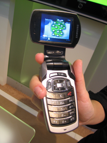 「SGH-P910」はDVB-H対応機。液晶画面をヨコ向きにできる