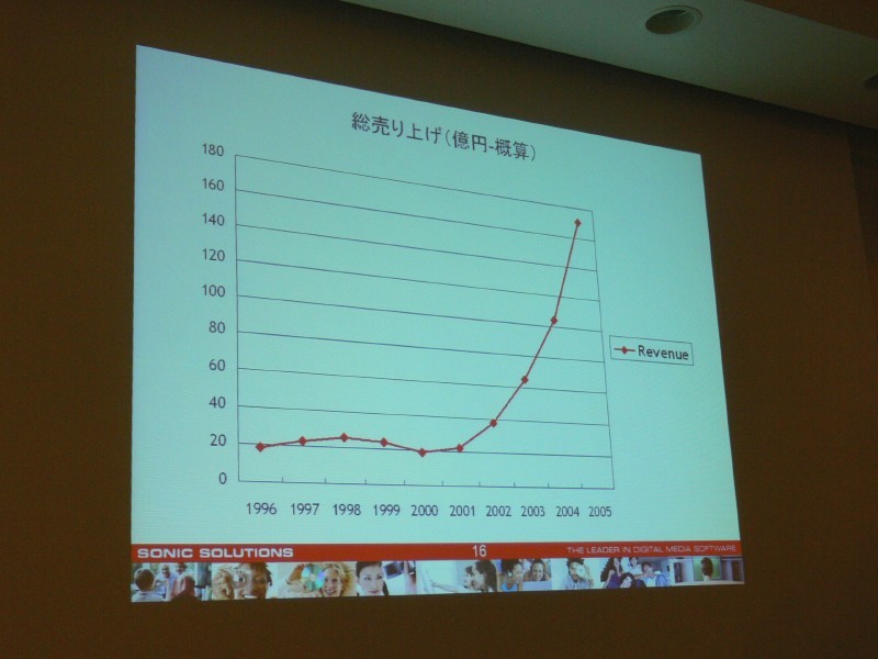 HOME > ニュース > AV&ホームシアターニュース ソニックが本年度事業戦略説明会を開催 − ハリウッドと連携したビジネス強化を宣言 2006年09月12日 前の写真へ 次の写真へ ソニックグループの総売上の推移 前の写真へ 次の写真へ この写真の記事へ 関連リンク ソニック・ソルーションズ
