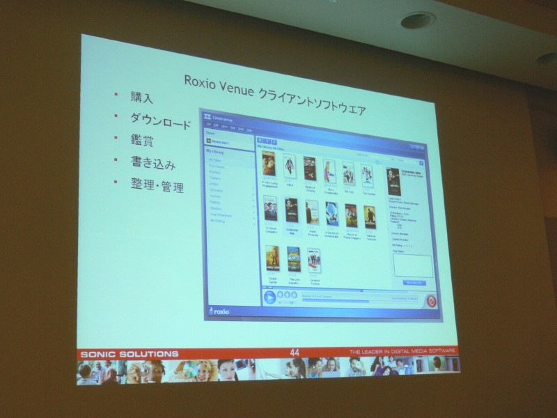 HOME > ニュース > AV&ホームシアターニュース ソニックが本年度事業戦略説明会を開催 − ハリウッドと連携したビジネス強化を宣言 2006年09月12日 前の写真へ 次の写真へ メディアアプリケーション「Roxio Venue」のデモも行った 前の写真へ 次の写真へ この写真の記事へ 関連リンク ソニック・ソルーションズ