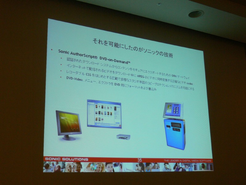 HOME > ニュース > AV&ホームシアターニュース ソニックが本年度事業戦略説明会を開催 − ハリウッドと連携したビジネス強化を宣言 2006年09月12日 前の写真へ VODサービスを実現するソニックの技術を説明 前の写真へ この写真の記事へ 関連リンク ソニック・ソルーションズ