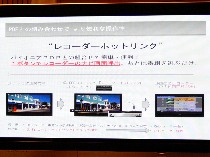 赤外線でプラズマとレコーダーを連動動作させる「レコーダーホットリンク」機能も搭載