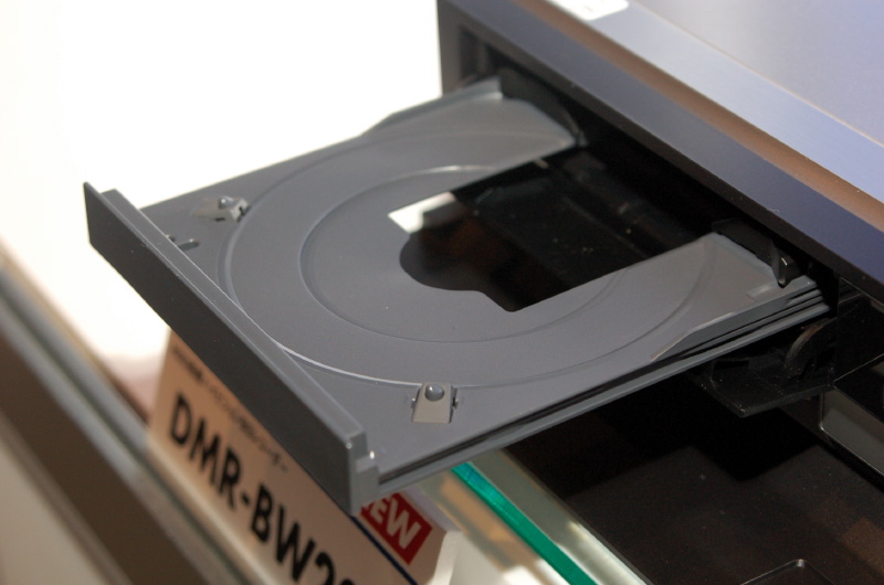 トレイを開けたところ。カートリッジ入りBDディスクの再生も可能