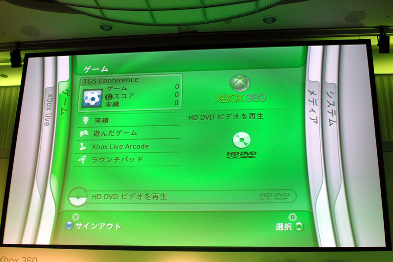 HD DVDプレーヤーを接続するとXbox 360のメニューから選択が可能になる