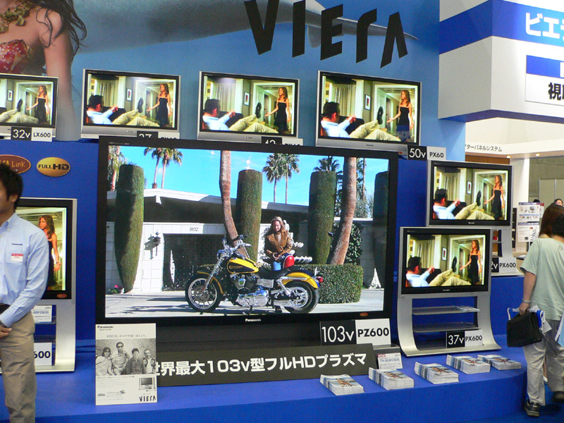 パナソニックのブースには103V型も含めたプラズマテレビのラインナップを展示