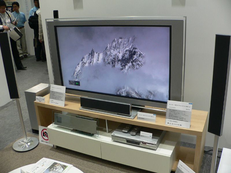 今回目立ったのがリビング風に機器を揃えた展示ブース。ソニーのブースは液晶テレビ、スピーカー、DVDレコーダーを組み合わせていた