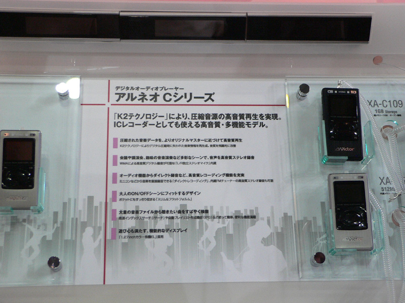 ポータブルオーディオの高音質化もアピール。ビクターのブースでは高音質か技術「K2テクノロジー」の効き目を体験できる展示を行っていた