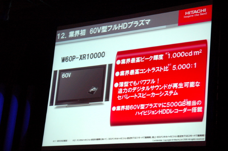 日立、Woooプラズマテレビ新モデル「10000」シリーズを発売 − 60V型フルHDと50V型の計3機種