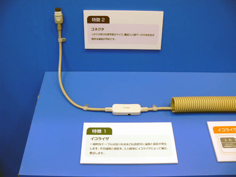 HOME > ニュース > AV&ホームシアターニュース <CEATEC2006:エイム電子>30mの長尺を実現したイコライザー付きHDMIケーブルを展示 2006年10月05日 前の写真へ 次の写真へ コネクターは業界最小サイズ。ケーブル径も細く、柔軟性があるので配線に便利だ 前の写真へ 次の写真へ この写真の記事へ 関連リンク Phile-web CEATEC関連ニュース一覧 CEATEC公式サイト