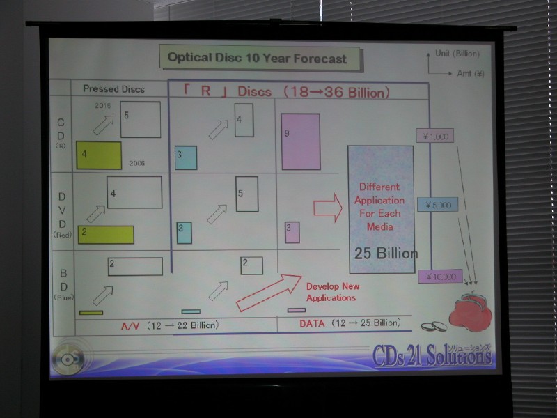10年以内の光ディスク業界に関する売上げの予測が示された