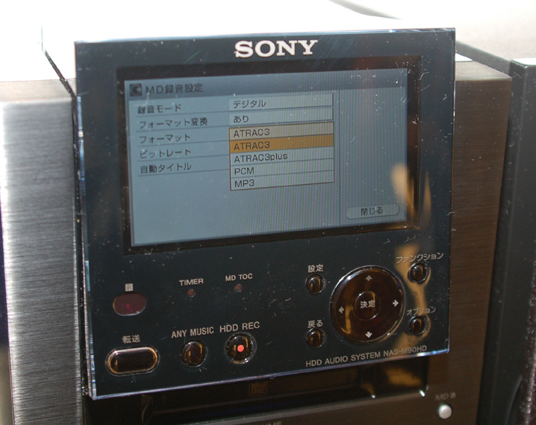 MDからHDDへの取り込み時にはファイルフォーマットを選択できる