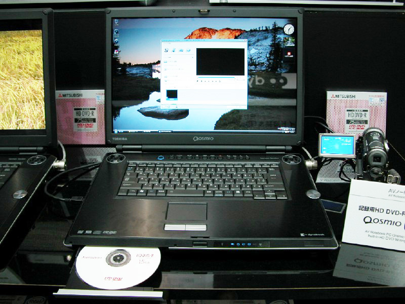 HD DVD記録対応ドライブを内蔵したQosmio試作機を展示
