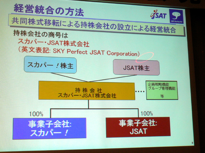 スカパー!とJSATが経営統合 − 事業規模拡大でHD化など推進