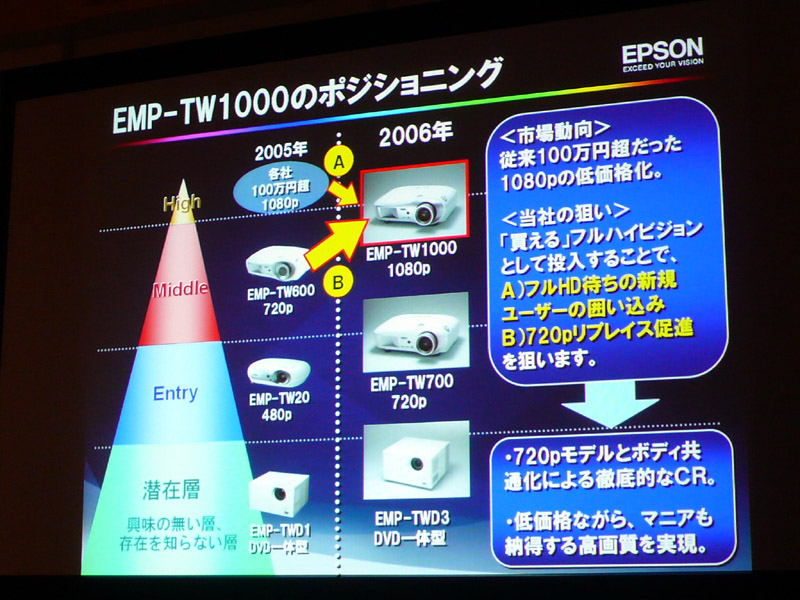エプソン、フルHD機「EMP-TW1000」の視聴セミナーで実機デモを実施