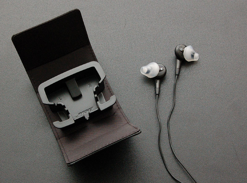 BOSE in-ear headphones(TriPort IE)。専用キャリングケースも付属する