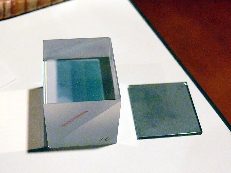 (左)従来のPBS/(右)新偏光板「WireGrid」。並べてみるとその大きさの違いは一目瞭然