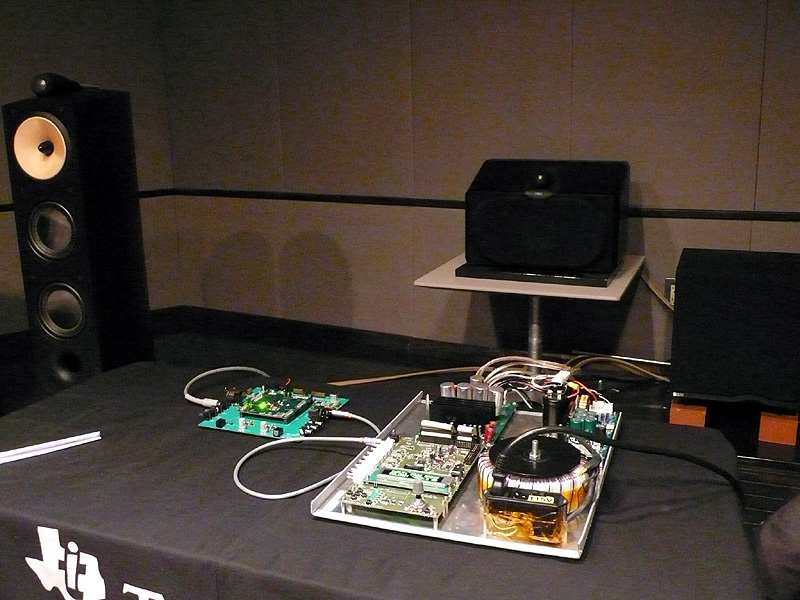 HOME > ニュース > AV&ホームシアターニュース TI、300Wを実現した小型・高効率のデジタルアンプなどハイエンド向け最新デバイスを発表 2006年11月14日 前の写真へ 次の写真へ デモでは評価機でB&Wのスピーカーを鳴らした 前の写真へ 次の写真へ この写真の記事へ 関連リンク 日本テキサス・インスツルメンツ(株)