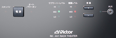 前面のパネル。サブウーファーのレベルなどを確認できる