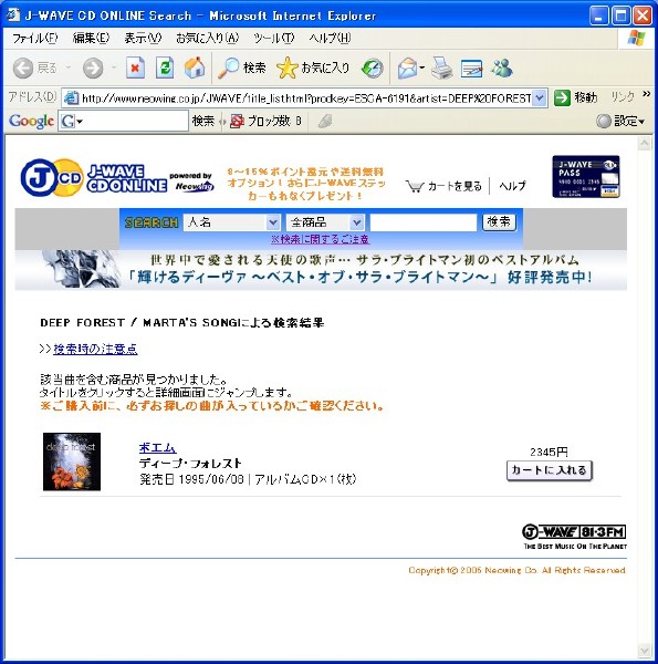 探していた曲が見つかったらそのまま買い物ができるとは。インターネットは便利な物だと痛感する