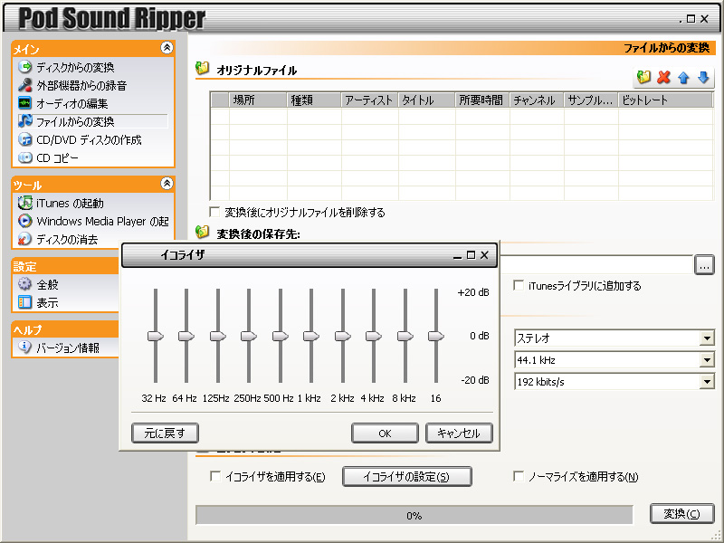 HOME > ニュース > AV&ホームシアターニュース サイバーリンク、アナログレコードなどのMP3化に便利なPCソフトを発売 2006年12月11日 前の写真へ 変換設定も詳細に行える 前の写真へ この写真の記事へ 関連リンク 本製品の詳細 本製品のニュースリリース 「Pod Sound Ripper」ダウンロード販売ページ