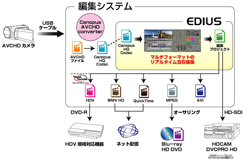 HOME > ニュース > AV&ホームシアターニュース カノープス、AVCHDコンバートツールの無償ダウンロードを実施 2006年12月11日 本ツールを使用しての映像編集ワークフロー この写真の記事へ 関連リンク 本件のニュースリリース カノープス(株)