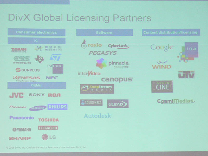 DivXのライセンシングパートナーの一覧