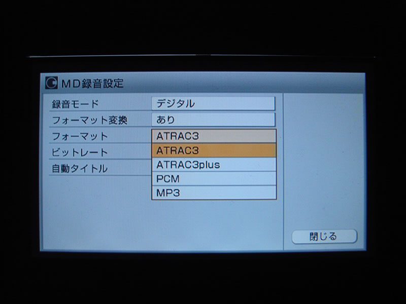 CD/MDからHDDへの録音はMP3、ATRAC、リニアPCMが選べる