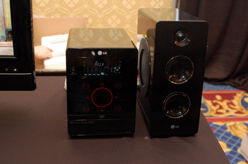 同じくLG電子のミニコンポ。ブルーとレッドのインジケーターがスタイリッシュな雰囲気を演出している