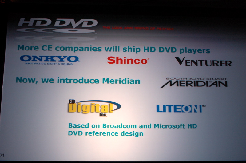オンキヨーやメリディアンなどが、新たにHD DVDメーカーとして加わった