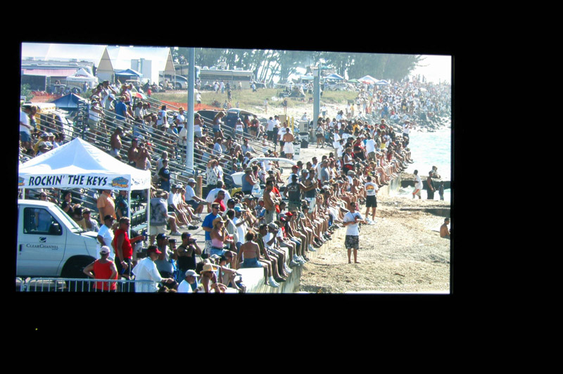 パナソニックブースに展示された42型フルHD試作パネルの映像。緻密なディテール再現となめらかな遠近感に注目