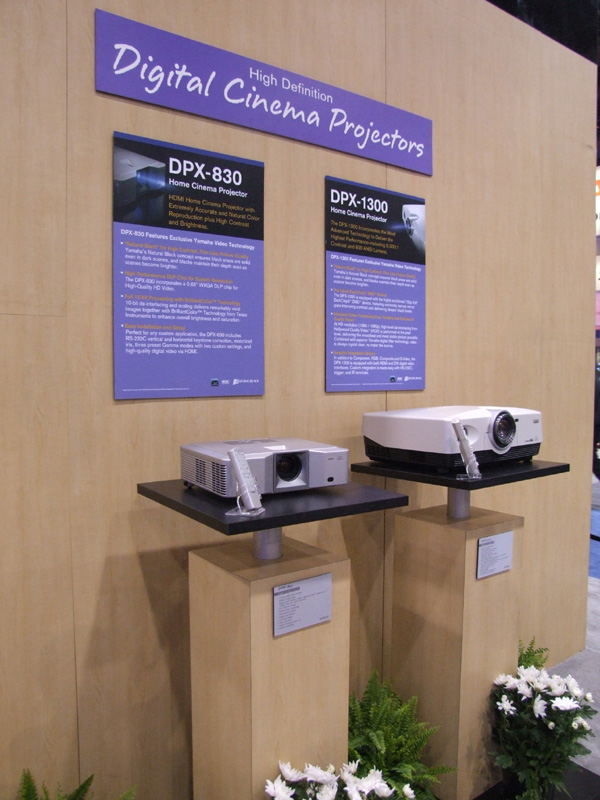 プロジェクターは現行製品の展示のみ。左の「DPX-830」(画素数1280×768)は国内では未