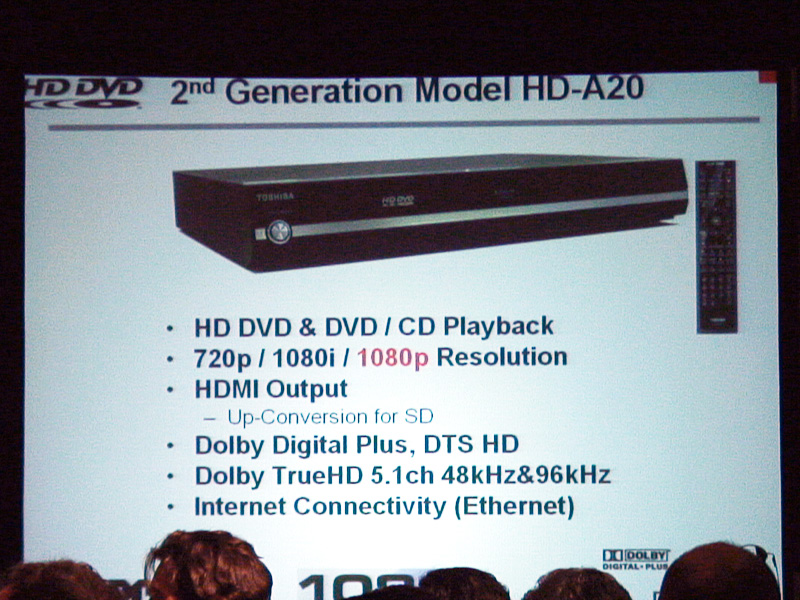 東芝は7日のカンファレンスで599ドルで1080p出力対応のHD DVDプレーヤーを発表