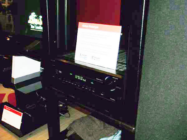 ゲームのブースに設置されたオンキヨーのAVアンプ試作機。こちらも実際に音声を再生している