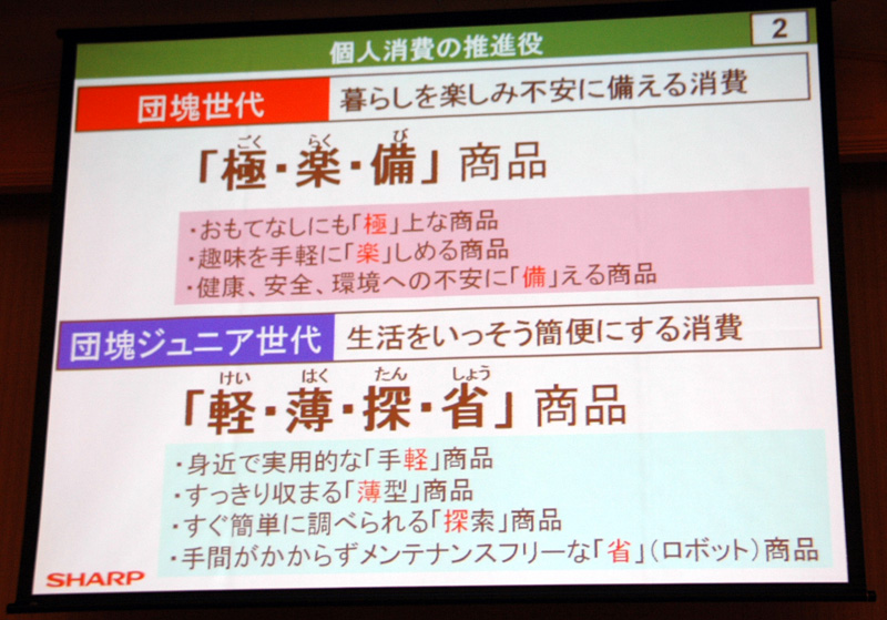 団塊世代&団塊ジュニア世代に向けた同社の商品戦略を発表