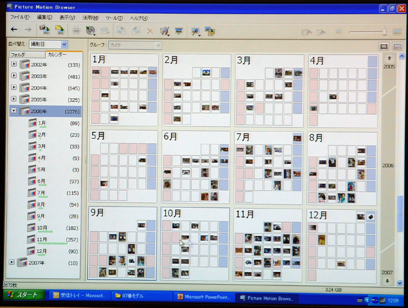 付属ソフト「Picture Motion Browser」では、撮影映像のカレンダー管理も可能だ