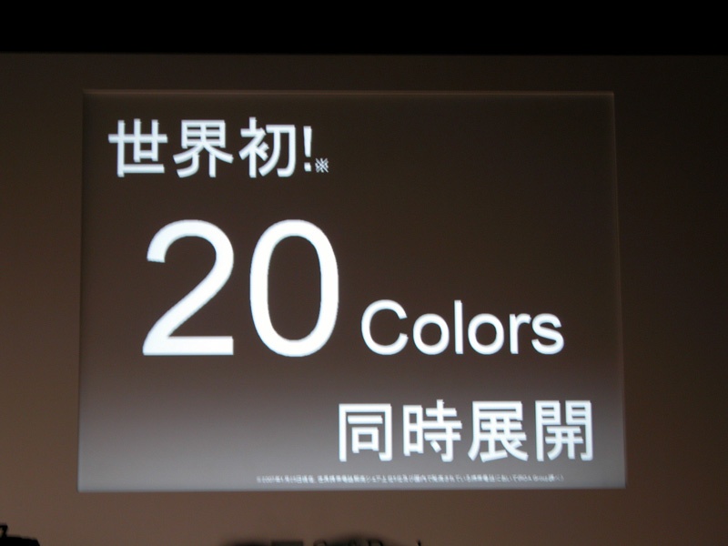 HOME > ニュース > AV&ホームシアターニュース 2007年春モデルは「薄さ・ワンセグ・ファッション」で勝負 − ソフトバンク・孫社長記者会見 2007年01月25日 前の写真へ 次の写真へ 新機種812SHでは世界初の20色カラーバリエーション展開を発表 前の写真へ 次の写真へ この写真の記事へ 関連リンク ソフトバンクモバイル
