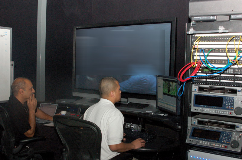 コンプレッションルーム。映像を子細に観察しながら様々なパラメーターを調整する