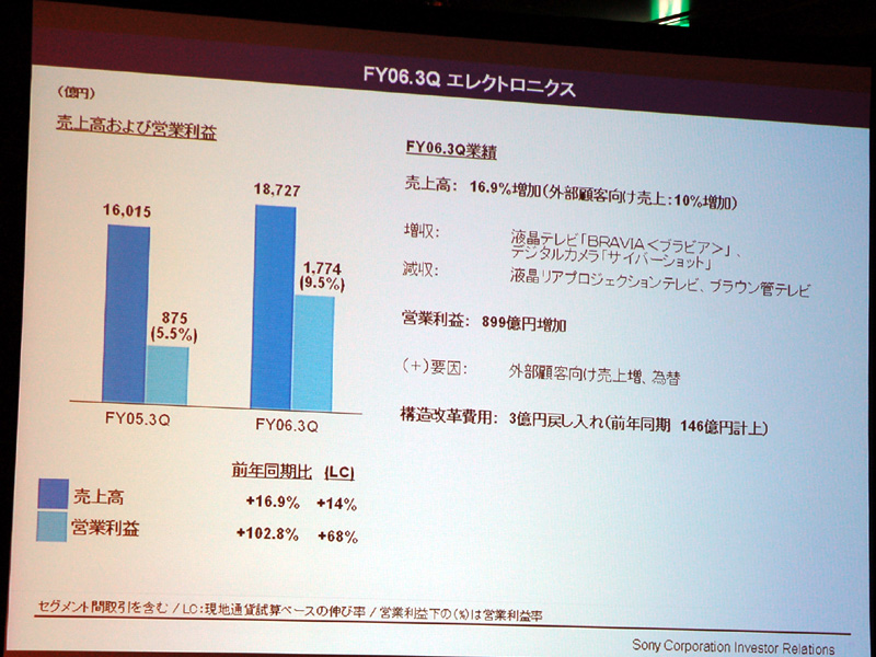 ソニー、第3四半期業績を発表 − BRAVIA好調で過去最高の売り上げを記録