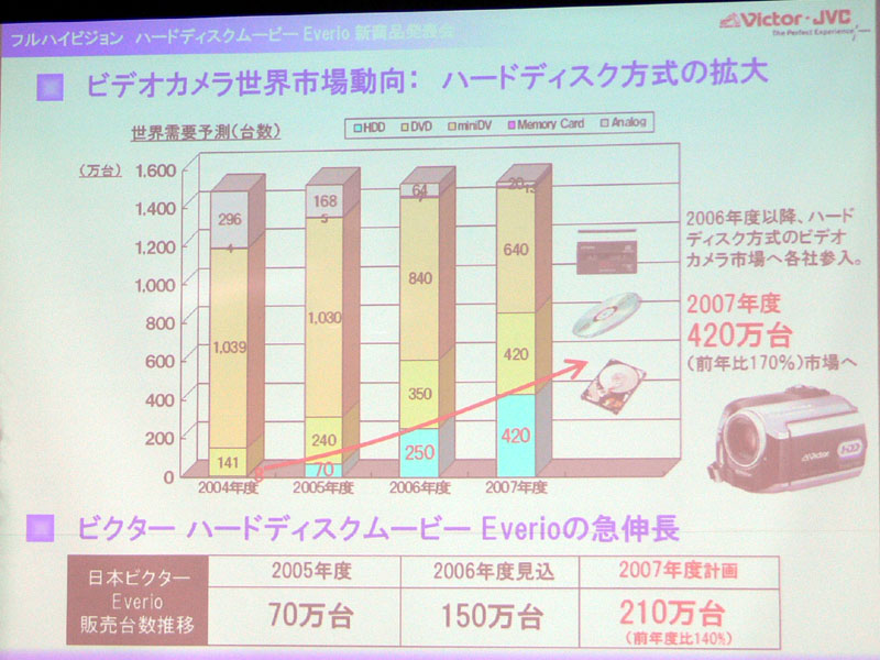 ビクター、フルHD“Everio”を正式発表 − HD映像の保存対応DVDライターも発売