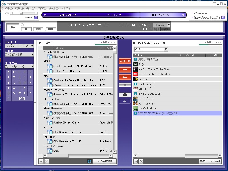ネットジュークからウォークマンに転送した音楽ファイルを、純正ソフトのソニックステージを使ってパソコンのHDDに書き込もうと思ったのだが…