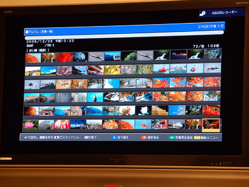 72枚表示可能な「アルバム画面」