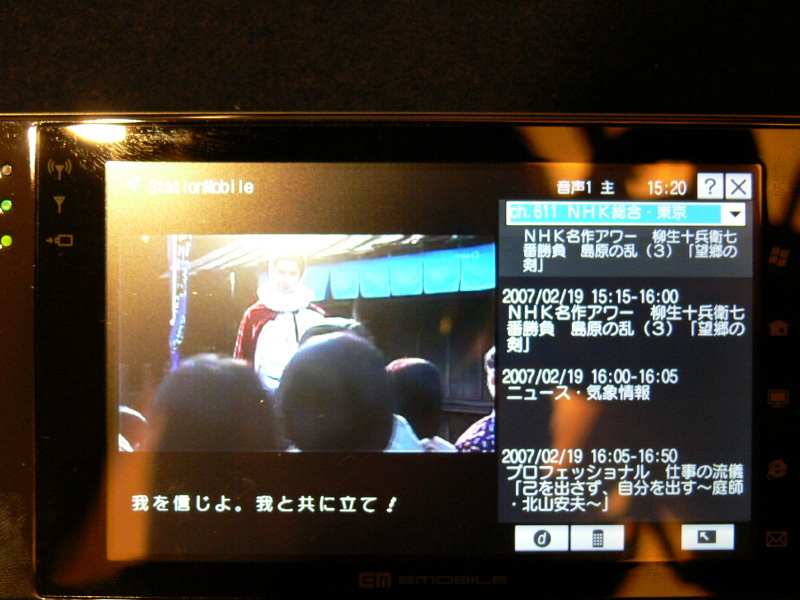 ワンセグ受信画面。文字を表示することも可能