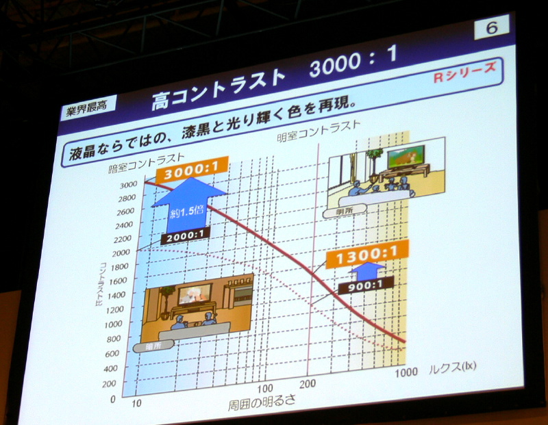 暗所コントラスト3,000対1、明所コントラスト1,300対1を実現