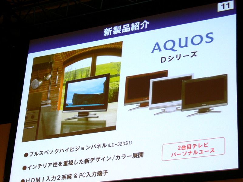 シャープ、3色展開の32/26/20V型液晶テレビ“AQUOS Dシリーズ”
